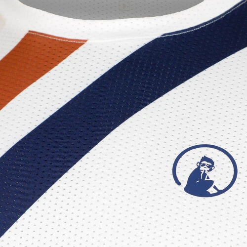 With the Retro Stripe Receiver T-Shirt, Quiet Please proves that it doesn’t take much to create a simple but thoroughly stylish tee. Clean colours, straight lines and a pleasant comfort are the highlights of the Receiver shirt. Quiet Please focuses on a loose fit and an airy polyester material that feels pleasantly soft against the skin. Of course, the tennis-mad mascot from Quiet Please can’t be missing as a monkey logo on the chest, just like the diagonal, coloured stripes. A crew neck, short sleeves and flat seams round off the benefits of the Retro Receiver T-shirt. Opt for easy style now with the Quiet Please Retro Stripe Receiver Shirt!